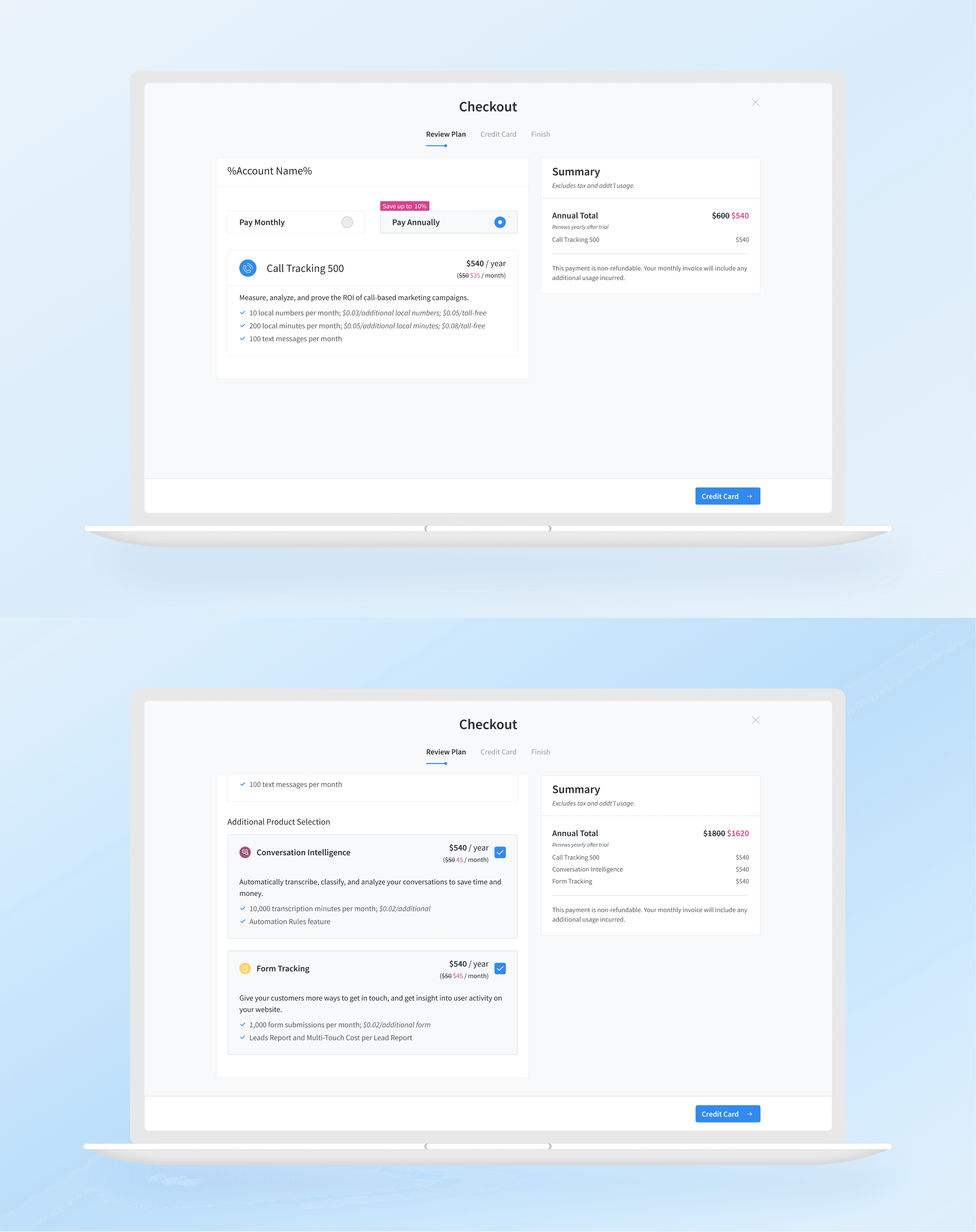 Annual billing was new for CallRail. Before this, customers only had monthly plans. Adding annual subscriptions meant new customers would now encounter a pricing decision at checkout -- monthly or annual -- with real financial implications either way.